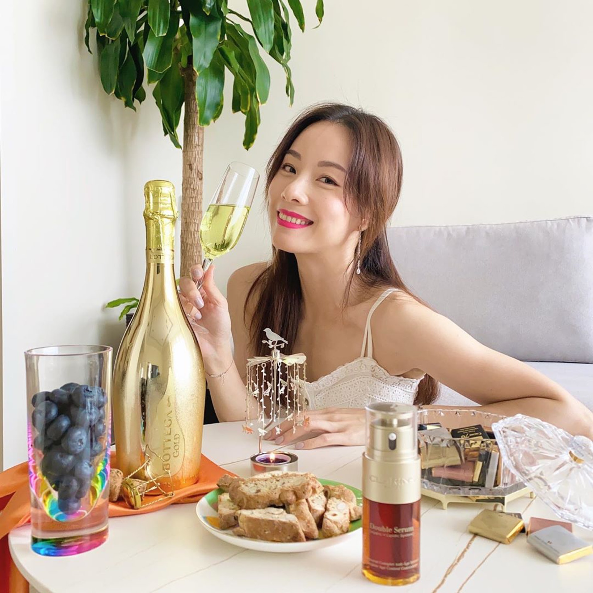 因為疫情關係,Stephy和男友王子邱勝翊已經很久沒得見面,幸好身邊有一幫好朋友,他在IG貼出和蛋糕合影留言說 : 「大風大雨下收到生日蛋糕直送上門也太感動了,本來今天的行程因為8號風球而取消了,你們為我準備的蛋糕都不能一起切一起慶祝,很可惜!所有愛都不是理所當然,珍惜,感恩。」但最大亮點也是Stephy素顏示人,可能因為平時經常運動,膚質相當不錯,眼紋虎紋通通不見,令人羨慕!